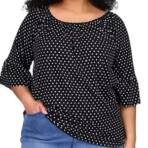 MICHAEL Michael Kors Polka Dot Scoop Neck Ruffled 3/4 Sleeve Peasant Top
