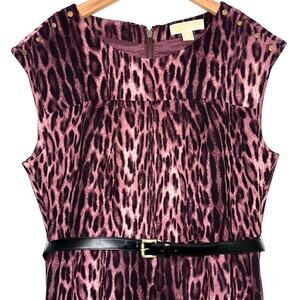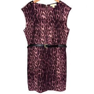 MICHAEL Michael Kors Purple Animal Print Belted Sheath Dress Size 14