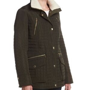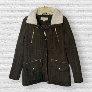 MICHAEL Michael Kors Quilted Anorak Zip Front Coat in Dark Moss Olive Size Small