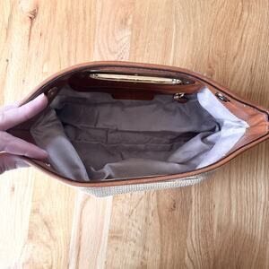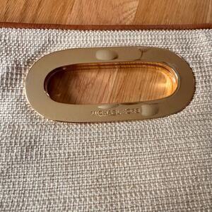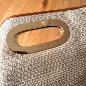 MICHAEL Michael Kors Raffia Top Handle Berkley Clutch Gold Tone Hardwear