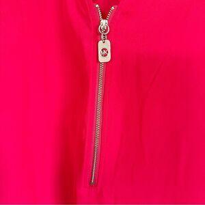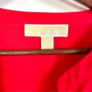 This vibrant red blouse by Michael Kors features a relaxed fit with long sleeves and a chic mandarin collar. The lightweight fabric drapes beautifully, making it a versatile choice for both casual and semi-formal occasions. A stylish zipper detail adds a modern touch to this elegant top.