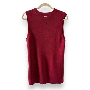 Red metallic ribbed knit sleeveless sweater. Hi-low hem, split side vents. Has stretch. Can be dressed up or down. New with tags.