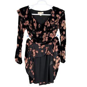 MICHAEL Michael Kors Womens Size Small Black Velvet Burnout Floral Long Sleeve Ruffled Knee Length Dress Silk Blend