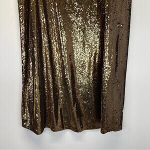 MICHAEL Michael Kors Sequin A-Line Midi Skirt in Gold. This skirt features an allover sequin. The flattering A-line silhouette gently flares from the waist, offering a feminine shape. Perfect for evening events or special occasions, this skirt is equipped with a center back zip and a hook-and-eye closure for a smooth, secure fit. Lined for added comfort and structure. Pair it with a simple top or a sleek blouse for an effortlessly sophisticated look.