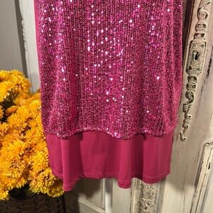 Shine bright with this stunning pink sequin sleeveless top. Perfect for a night out or special occasion.