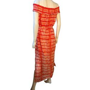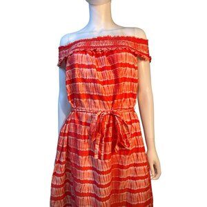 MICHAEL Michael Kors Shibori Off Shoulder Orange Striped Midi Dress Size 1X NWT