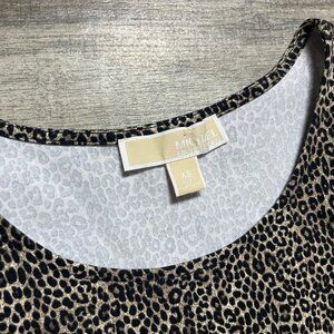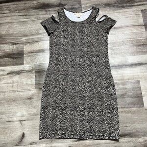 Women’s casual short sleeve dress from Michael Kors! Lightweight and stretchy material great for any outfit or occasion. Scoop Neck, cold shoulder, fitted, mini length, leopard pattern, great used condition!
