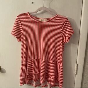 MICHAEL Michael Kors Short Sleeve Ruffle Tier Peplum Candy Stripe Top M Classic