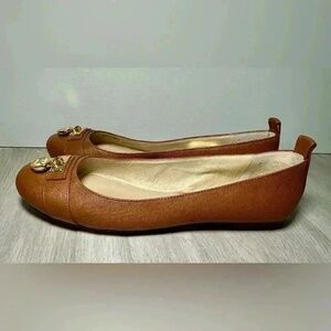 MICHAEL Michael Kors Ballet Flats Womens Size 8M Brown Hamilton Gold Medallion Classic Elegant