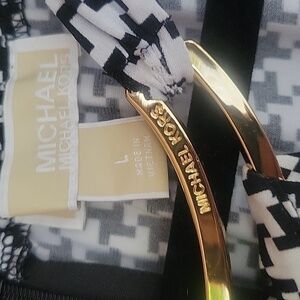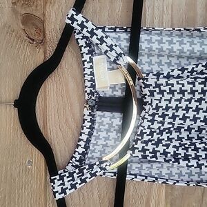 MICHAEL Michael Kors Size Large Houdstooth Halter Dress with Gold Neck Accent