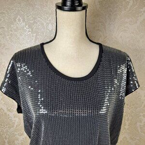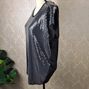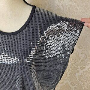 MICHAEL Michael Kors Size Med Black Blouse silver/Gunmetal Sequin Front NWT