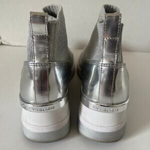 MICHAEL Michael Kors Skyler Silver Metallic Stretch Knit Sock Booties • Size 8