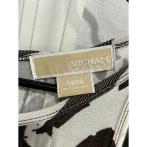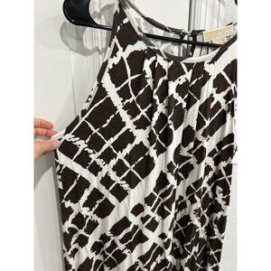 modern, trendy, chic, Michael Kors dress, sleeveless dress, brown white dress, professional dress, rayon spandex dress, medium dress, women's fashion, mid-length dress, office wear, designer dress, Vietnam made, comfortable dress, elegant