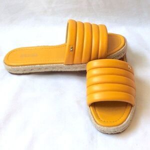MICHAEL Michael Kors Slide Sandals Yellow Leather Quilted Royce Sz 7 NEW Sandal