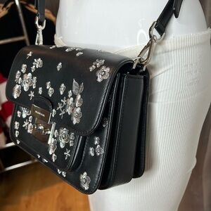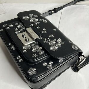 This is a great MICHAEL Michael Kors Sloan Editor Embroidered Black Leather Shoulder Bag. Excellent pre owned condition. No issues.