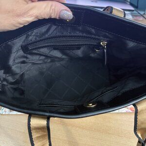USED MICHAEL KORS Maeve Black Soft Faux Leather/ Canvas Small Tote/Crossbody Bag