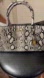Stylish snake print satchel. Features dual handles and a detachable strap. Perfect for versatile wear.