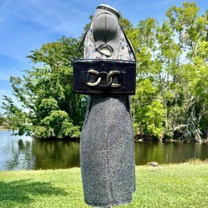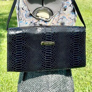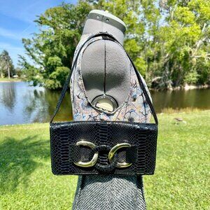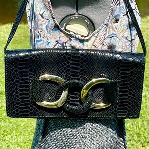 MICHAEL Michael Kors Snakeskin Leather Gold Chain Evening Bag Clutch Black EUC