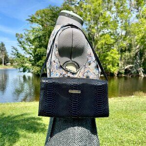 Black Snakeskin Embossed Leather
