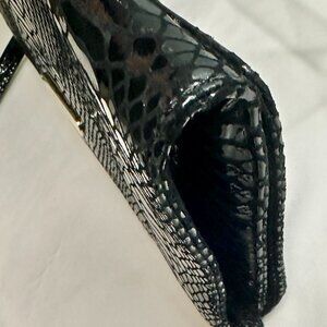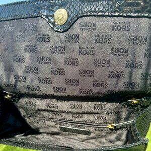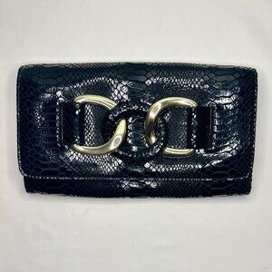 MICHAEL Michael Kors Snakeskin Leather Gold Chain Evening Bag Clutch Black EUC