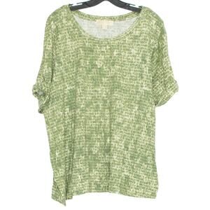 MICHAEL Michael Kors Top Spell Out Peace Love Boho Minimalist Casual Green 3X