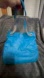 Chic blue shoulder bag with chain accents. Features signature logo charm. Ideal for versatile styling. Soft outside texture. Bag has been conditioned and cleaned. Can be hand bag or shoulder bag.