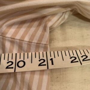Elegant white striped blouse. Features gold eyelets and lace-up detail. Flared sleeves add style.PTP-21”
