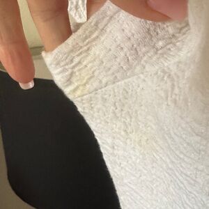 Elegant white dress with textured fabric. Short sleeves and round neckline. Flared skirt for a feminine touch. very comfortable little dress. pet free smoke free home