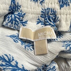 MICHAEL Michael Kors White and Blue Coral Pattern Blouse
