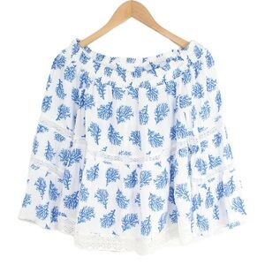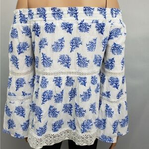 Stylish off-shoulder blouse with coral pattern. Perfect for summer days.