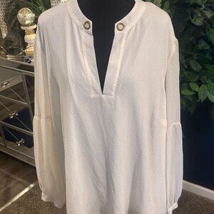 MICHAEL Michael Kors White and Gold Sheer Blouse