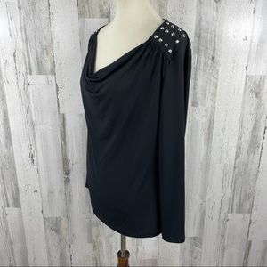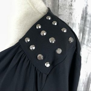Features: Classic, Timeless, Casual to Dressy, Silver Beaded Studs on Shoulders, Draped V Neck, Top, Shirt