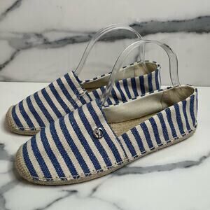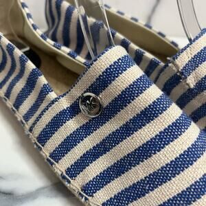 MICHAEL Michael Kors Women's Blue Cream Striped Canvas Kendrick Flat Sz 8