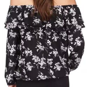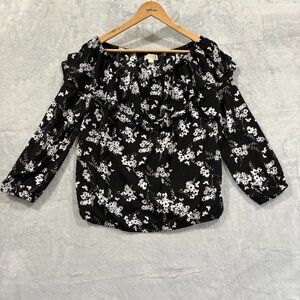 MICHAEL Michael Kors Women's Bold Black Ruffle Top Sz Large Long Sleeve NWT