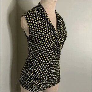 MICHAEL Michael Kors Women's Faux Wrap Ruched Yellow and Black Top Size MP