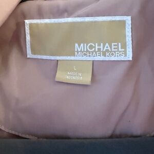 Chic warmth meets winter-ready performance in this Michael Kors faux-fur-trim puffer coat, in a soft blush pink and women’s size Large.