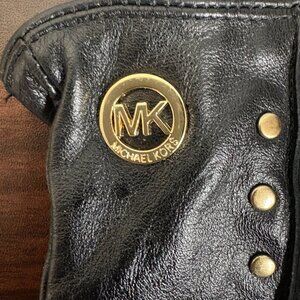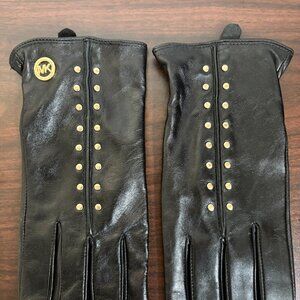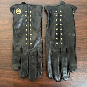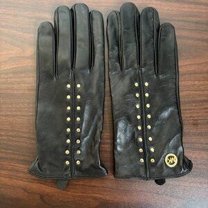 MICHAEL Michael Kors Women's Leather Astor Studded Gloves Black Size L