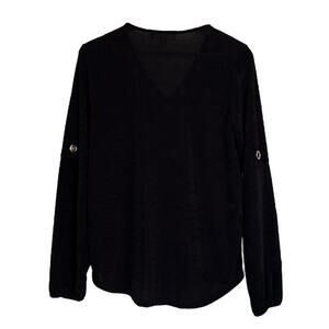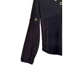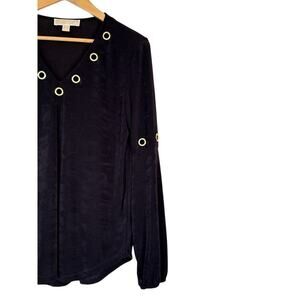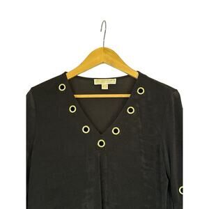 MICHAEL Michael Kors Women's Long Sleeve V-Neck Top Size S Black Gold Accents
