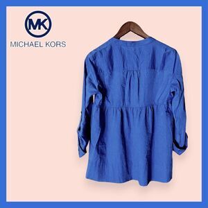 ๐นโ MICHAEL Michael Kors Blue Seersucker Style Blouse Top with Button Up Decolletage and Roll-tab Sleeves. โ๐น