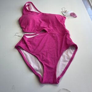 MICHAEL Michael Kors Womens One Shoulder Cerise Side Cutout One Piece Swimsuit