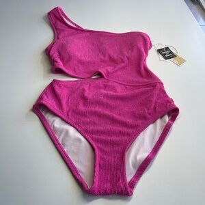MICHAEL Michael Kors Womens One Shoulder Cerise Side Cutout One Piece Swimsuit