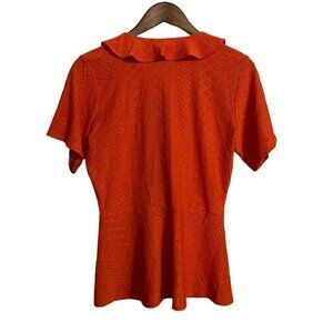 MICHAEL Michael Kors Womens Orange Faux Wrap Eyelet Ruffle Blouse Small