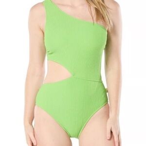 MICHAEL Michael Kors Womens Ribbed One Shoulder Side Cutout Swimsuit Green 8