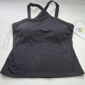 MICHAEL Michael Kors Womens Studded Black High Neck Tankini Swim Top Medium