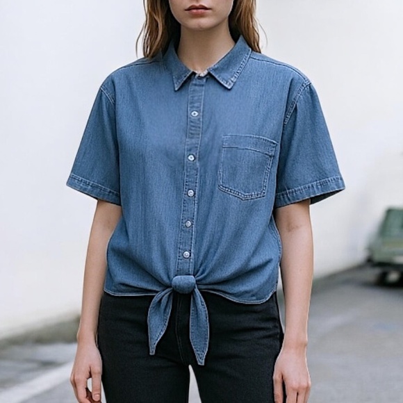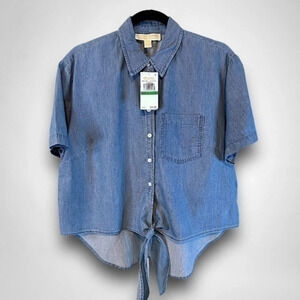MICHAEL Michael Kors Womens Tie-Front Shirt Light Cadet Wash LARGE NWT