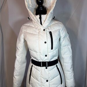 MICHAEL Michael Kors Women's White Faux-Fur-Trim Hooded Puffer Coat Size S
