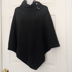 MICHAEL Michael Kors Women's Wide-Rib Button Turtleneck Poncho Black NWT