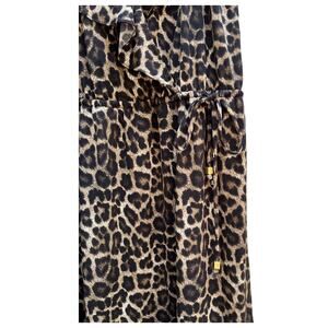 MICHAEL Michael Kors Wrap Dress. Gold Chain Straps. Brown and Black Animal Print. Ruffle Neckline. Snap Closure. Women Size Large.
