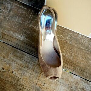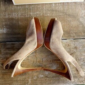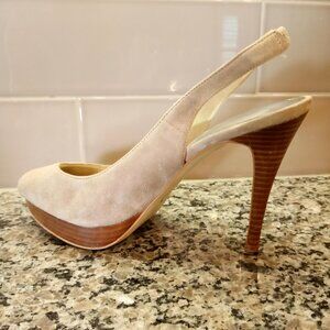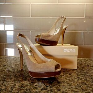 MICHAEL Michael Kors York Peep Toe Sling Back Suede / Wood 4.5" Heel Size 8.5M