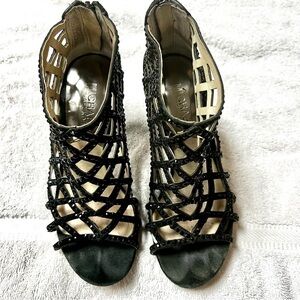 MICHAEL Michael Kors Yvonne Caged Open Toe Dress Sandals, Black Suede.